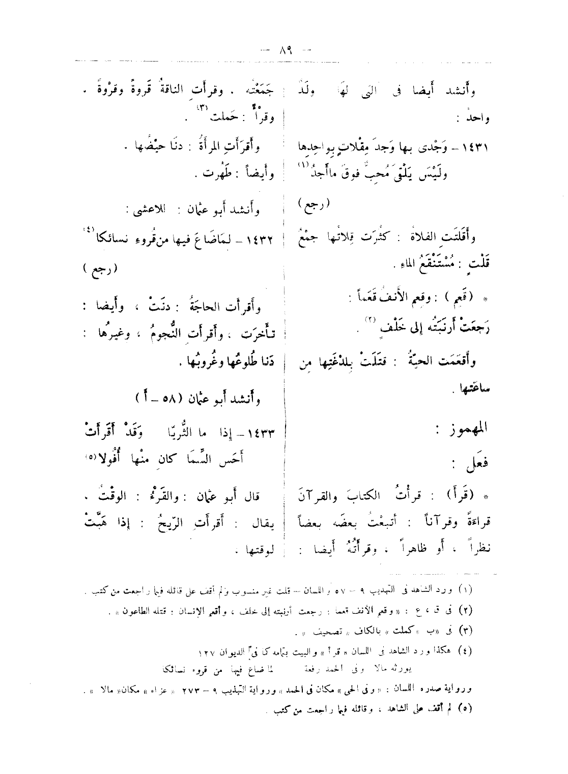 (¬4) ورد الرجز فى اللسان - قيل. غير منسوب، والشاهد من أرجوزة للعجاج يمدح يزيد بن عبد الملك.