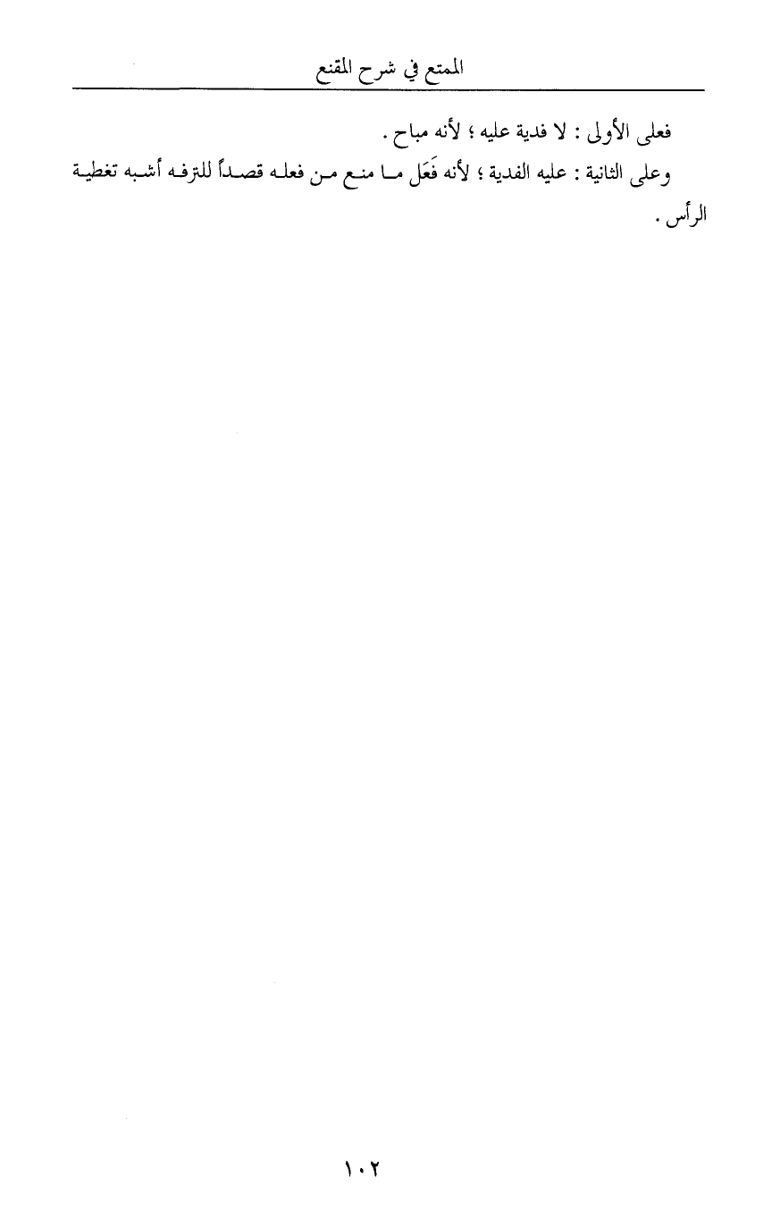 وعلى الثانية: عليه الفدية؛ لأنه فَعَل ما منع من فعله قصداً للترفه أشبه تغطية الرأس.