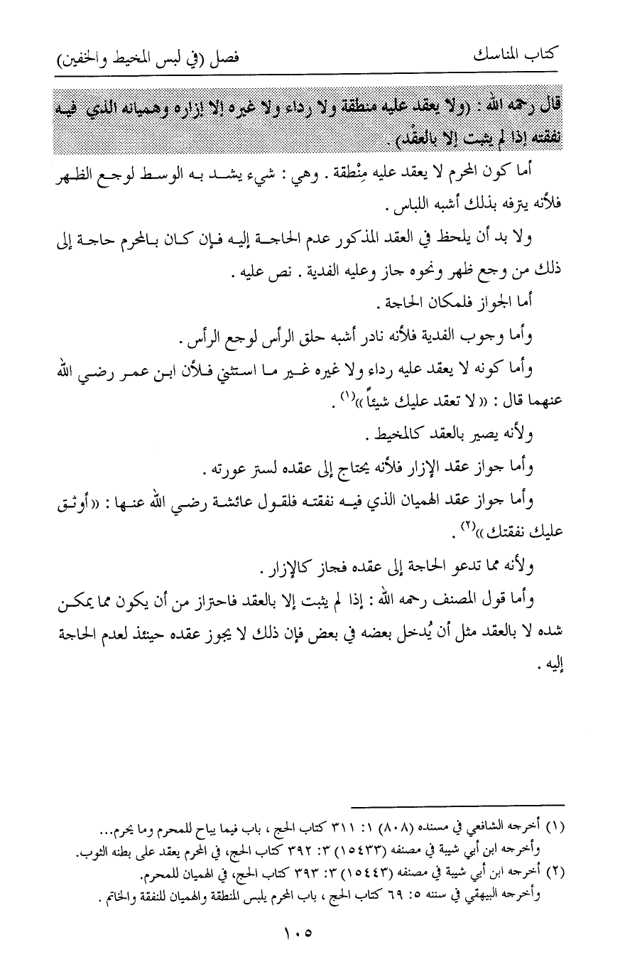 (¬2) أخرجه ابن أبي شيبة في مصنفه (15443) 3: 393 كتاب الحج، في الهميان للمحرم.