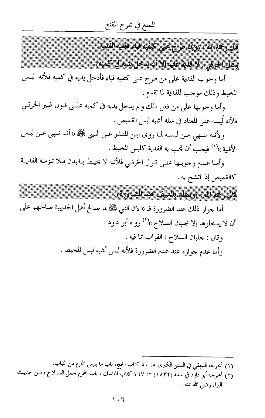 (¬2) أخرجه أبو داود في سننه (1832) 2: 167 كتاب المناسك، باب المحرم يحمل السلاح، من حديث البراء رضي الله عنه.