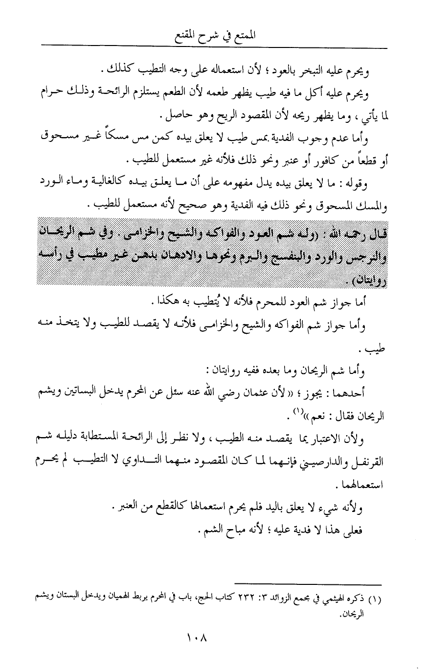 (¬1) ذكره الهيثمي في مجمع الزوائد 3: 232 كتاب الحج، باب في المحرم يربط الهميان ويدخل البستان ويشم الريحان.