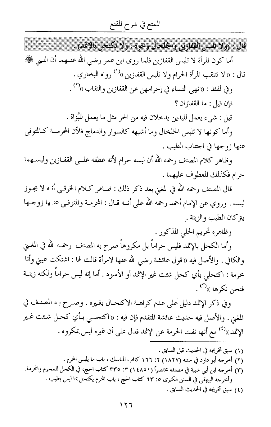 (¬3) أخرجه ابن أبي شيبة في مصنفه مختصراً (14851) 3: 335 كتاب الحج، في الكحل للمحرم والمحرمة.