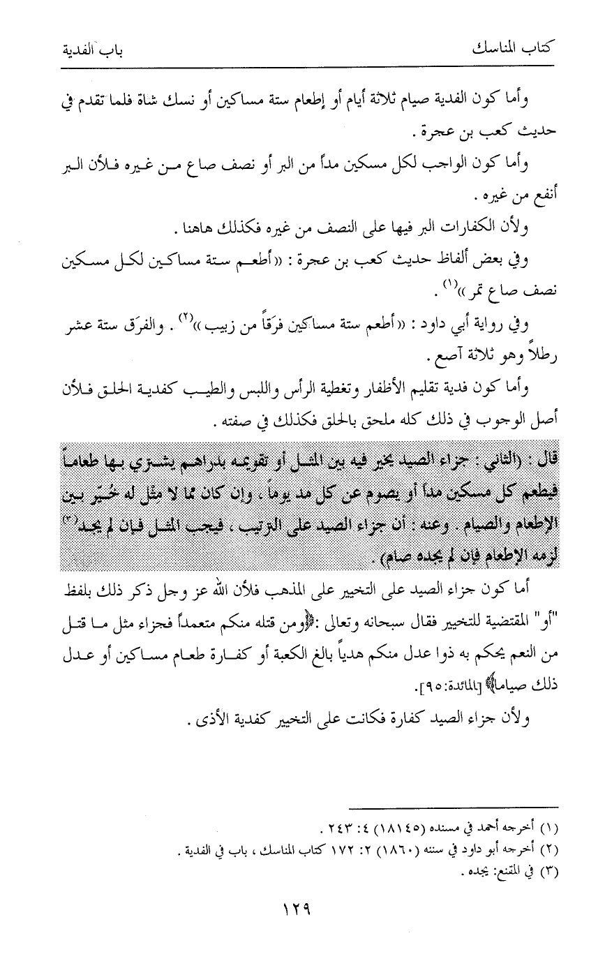 (¬2) أخرجه أبو داود في سننه (1860) 2: 172 كتاب المناسك، باب في الفدية.