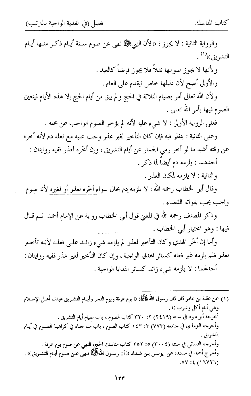 وأخرج أحمد في مسنده عن يونس بن شداد «أن رسول الله صلى الله عليه وسلم نهى عن صوم أيام التشريق». (16726) 4: 77.