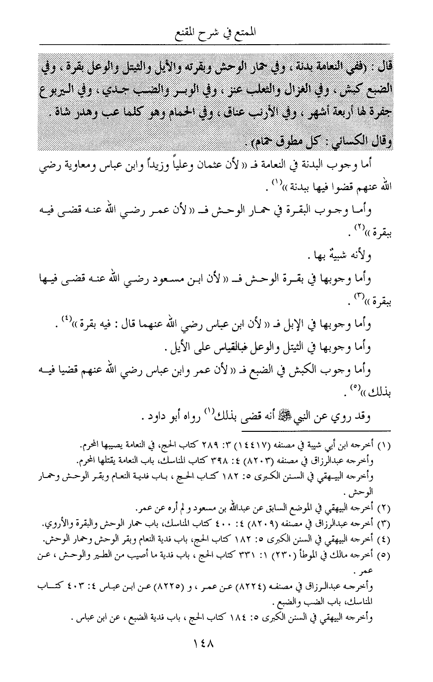 (¬3) أخرجه عبدالرزاق في مصنفه (8209) 4: 400 كتاب المناسك، باب حمار الوحش والبقرة والأروي.