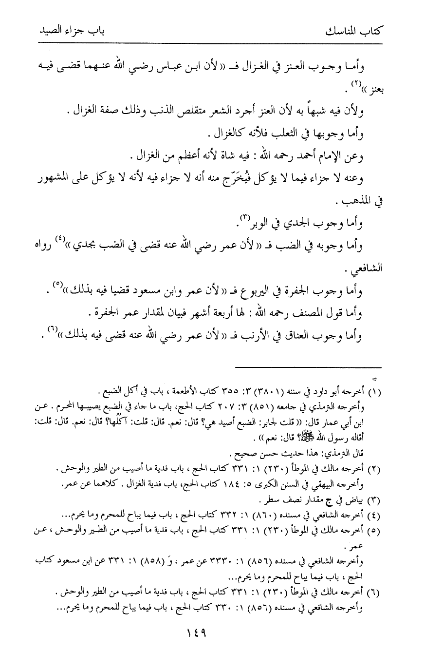 (¬5) أخرجه مالك في الموطأ (230) 1: 331 كتاب الحج، باب فدية ما أصيب من الطير والوحش.