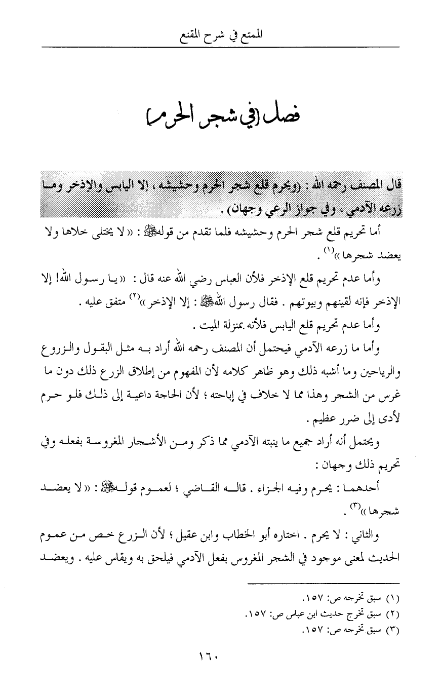 وأما عدم تحريم قلع الإذخر فلأن العباس رضي الله عنه قال: «يا رسول الله! إلا الإذخر فإنه لقينهم وبيوتهم. فقال رسول الله صلى الله عليه وسلم: إلا الإذخر» (¬2) متفق عليه.