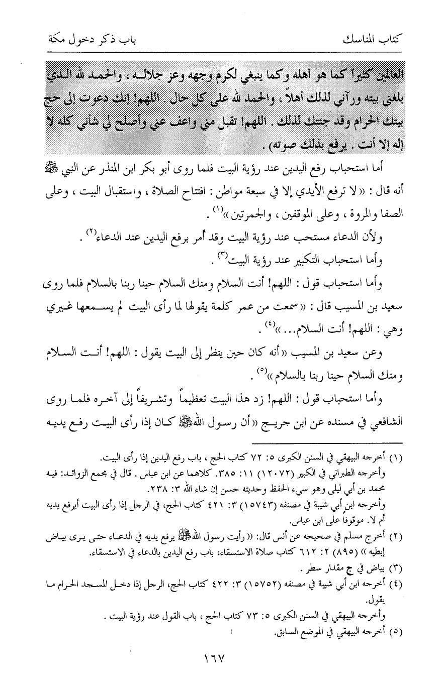 (¬4) أخرجه ابن أبي شيبة في مصنفه (15752) 3: 422 كتاب الحج، الرجل إذا دخل المسجد الحرام ما يقول.