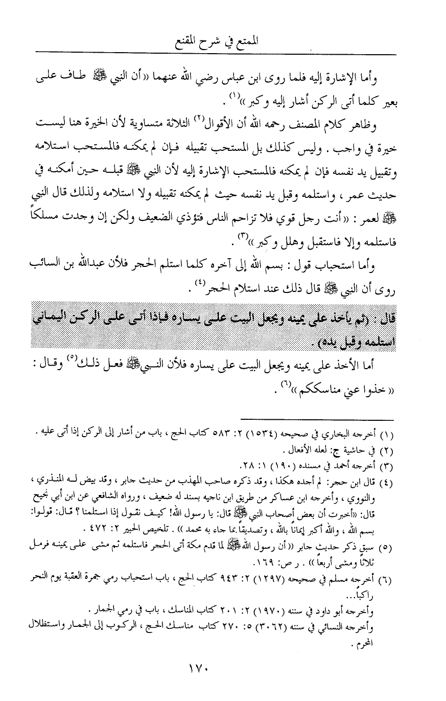 (¬5) سبق ذكر حديث جابر «أن رسول الله صلى الله عليه وسلم لما قدم مكة أتى الحجر فاستلمه ثم مشى على يمينه فرمل ثلاثاً ومشى أربعاً». ر ص: 171.