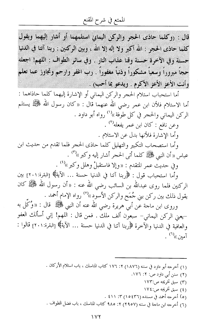 (¬6) أخرجه ابن ماجة في سننه (2957) 2: 985 كتاب المناسك، باب فضل الطواف.