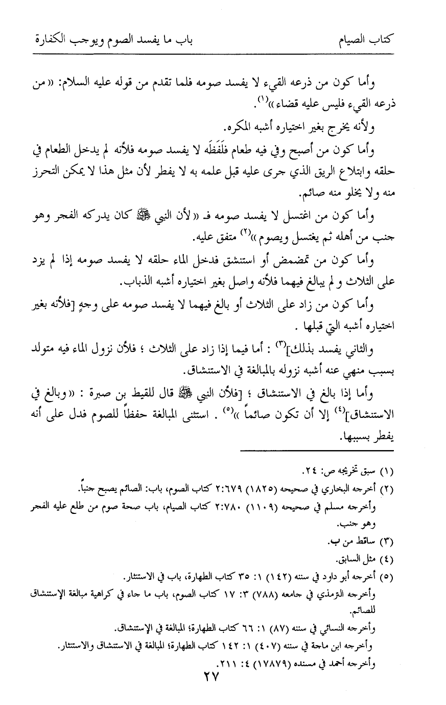 وأما كون من ذرعه القيء لا يفسد صومه فلما تقدم من قوله عليه السلام: «من ذرعه القيء فليس عليه قضاء» (¬1).