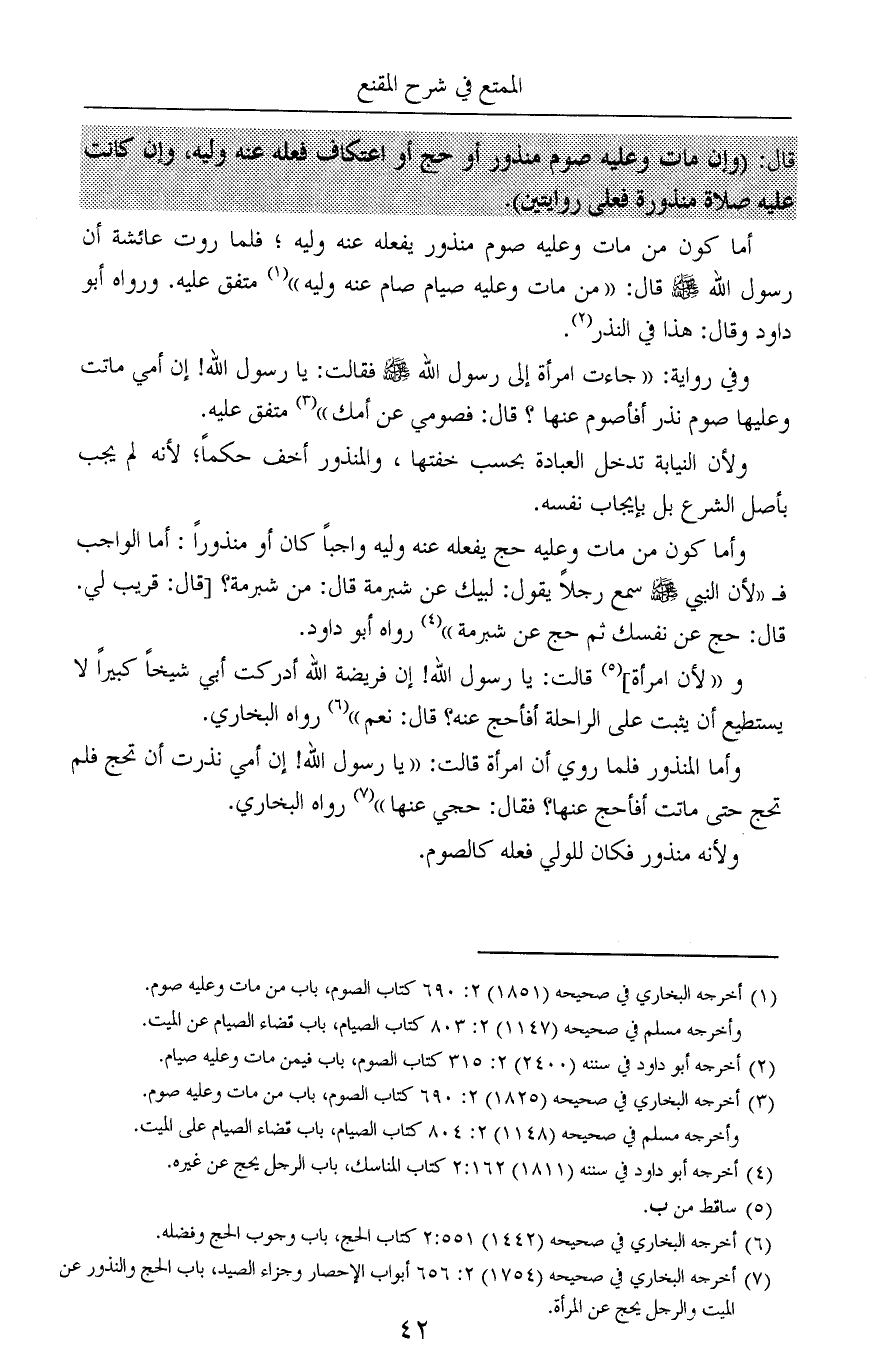 (¬7) أخرجه البخاري في صحيحه (1754) 2: 656 أبواب الإحصار وجزاء الصيد، باب الحج والنذور عن الميت والرجل يحج عن المرأة.