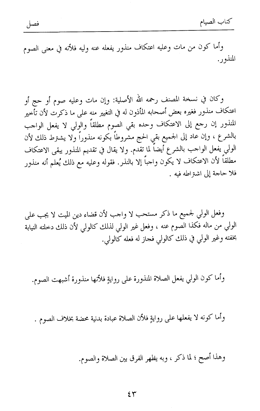 وفعل الولي لجميع ما ذكر مستحب لا واجب لأن قضاء دين الميت لا يجب على الولي من ماله فكذا الصوم عنه، وفعل غير الولي لذلك كالولي لأن ذلك دخلته النيابة بخفته وغير الولي في ذلك كالولي فجاز له فعله كالولي.