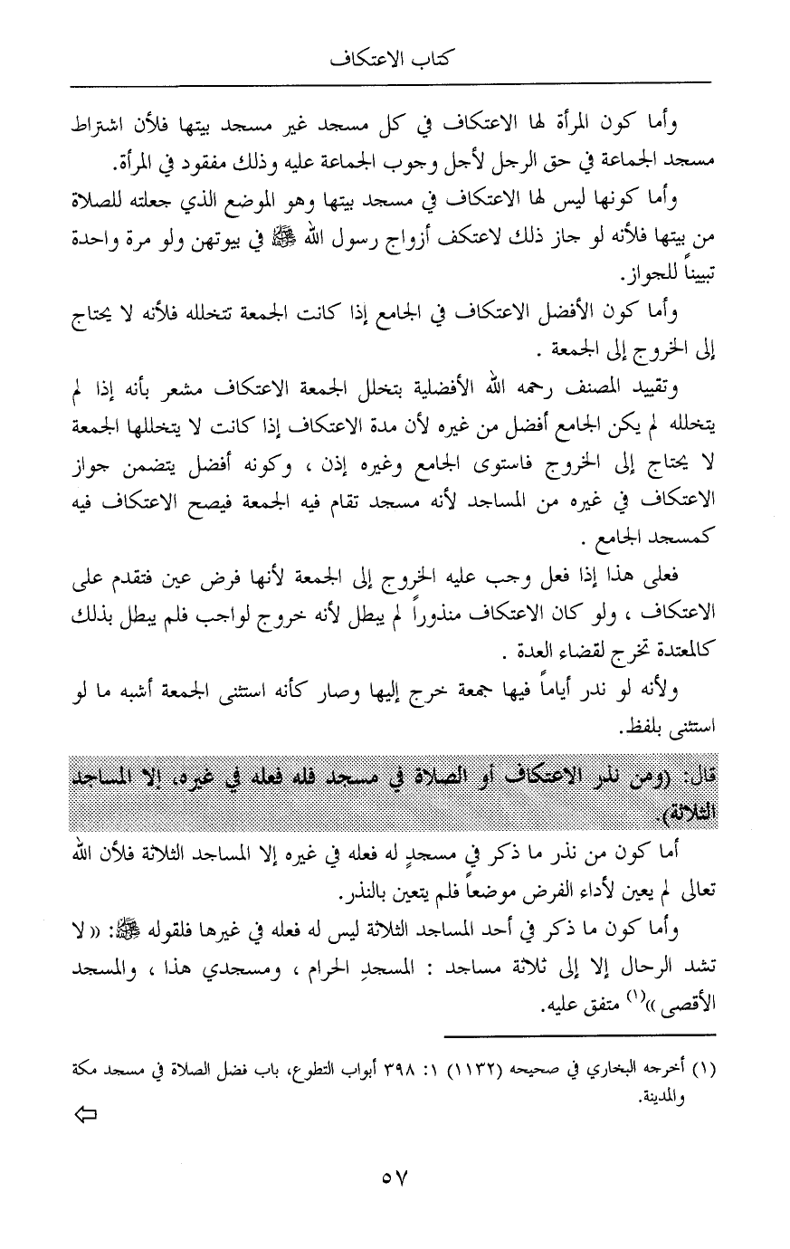 قال: (ومن نذر الاعتكاف أو الصلاة في مسجد فله فعله في غيره، إلا المساجد الثلاثة).