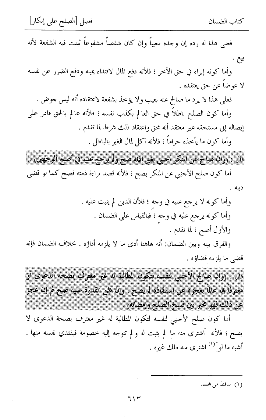 وأما كون الصلح باطلاً في حق العالم بكذب نفسه؛ فلأنه عالم بالحق قادر على إيصاله إلى مستحقه غير معتقد أنه محق واعتقاد ذلك شرط لما تقدم.