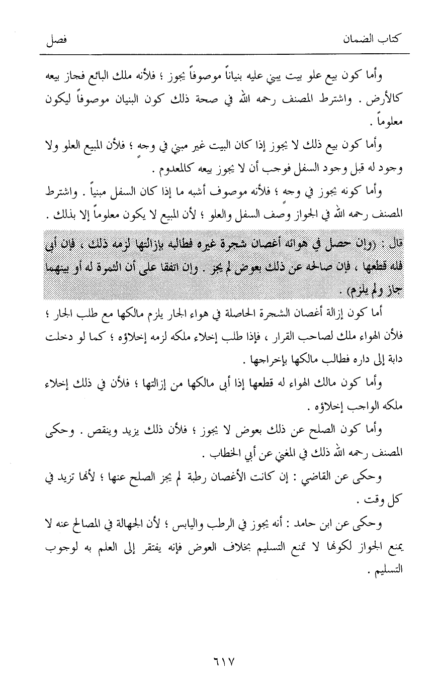 أما كون إزالة أغصان الشجرة الحاصلة في هواء الجار يلزم مالكها مع طلب الجار؛ فلأن الهواء ملك لصاحب القرار، فإذا طلب إخلاء ملكه لزمه إخلاؤه؛ كما لو دخلت دابة إلى داره فطالب مالكها بإخراجها.
