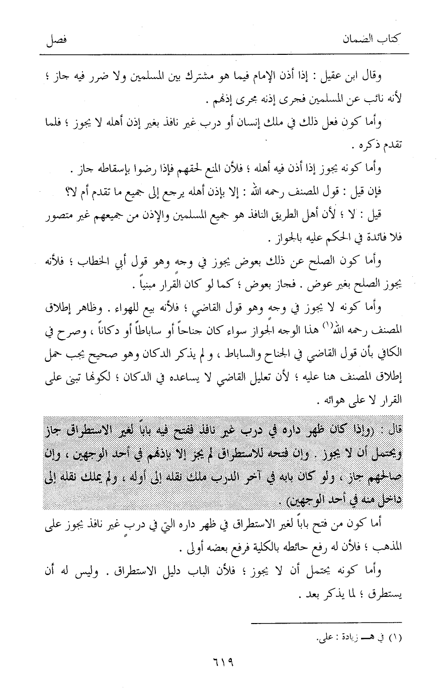 وأما كونه يحتمل أن لا يجوز؛ فلأن الباب دليل الاستطراق. وليس له أن يستطرق؛ لما يذكر بعد.