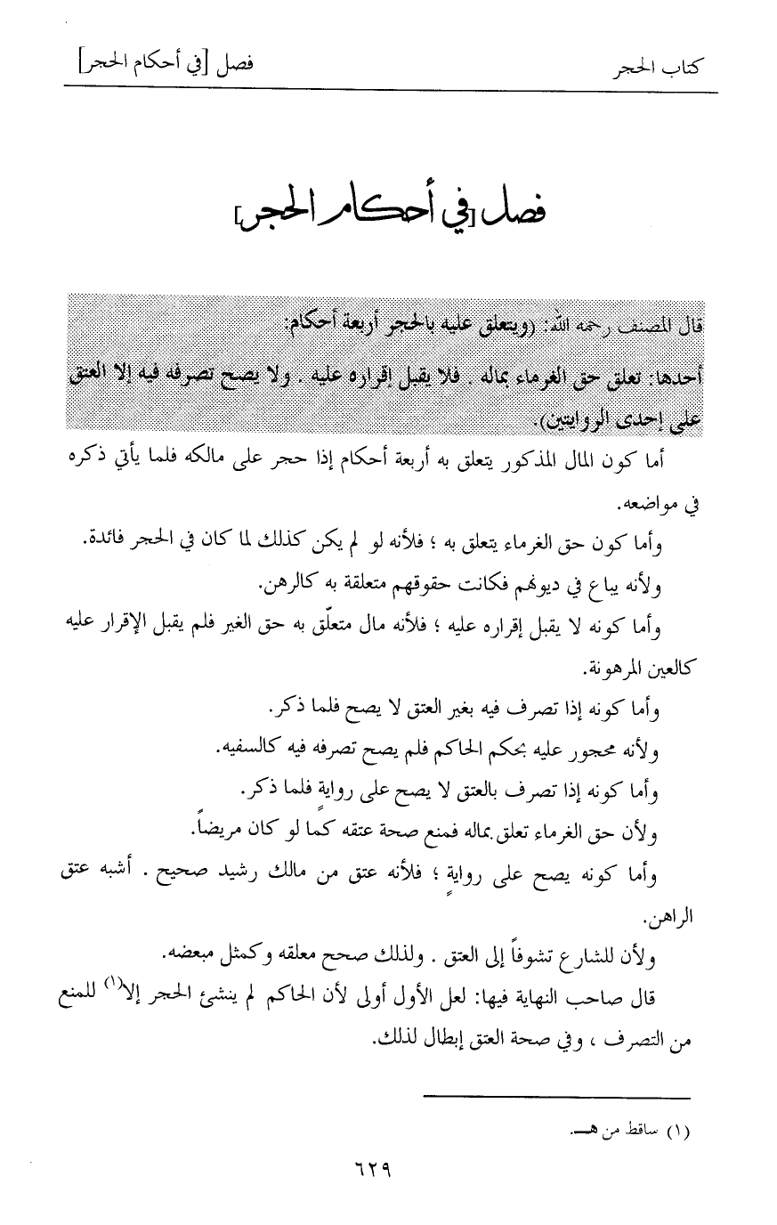 أما كون المال المذكور يتعلق به أربعة أحكام إذا حجر على مالكه فلما يأتي ذكره في مواضعه.