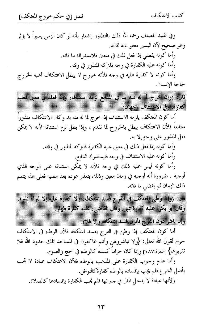 قال: (وإن وطئ المعتكف في الفرج فسد اعتكافه، ولا كفارة عليه إلا لترك نذره. وقال أبو بكر: عليه كفارة يمين. وقال القاضي: عليه كفارة ظهار.