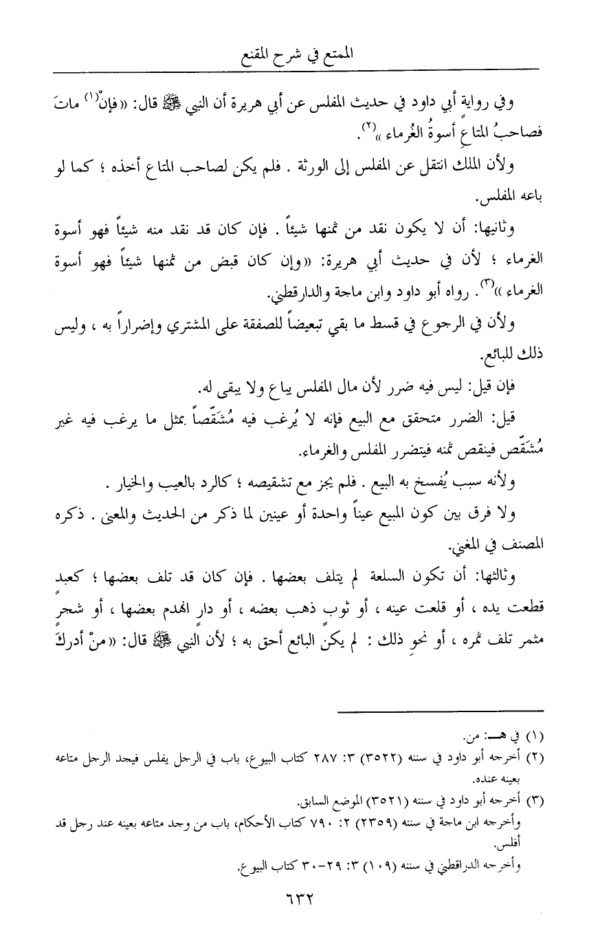 (¬2) أخرجه أبو داود في سننه (3522) 3: 287 كتاب البيوع، باب في الرجل يفلس فيجد الرجل متاعه بعينه عنده.
