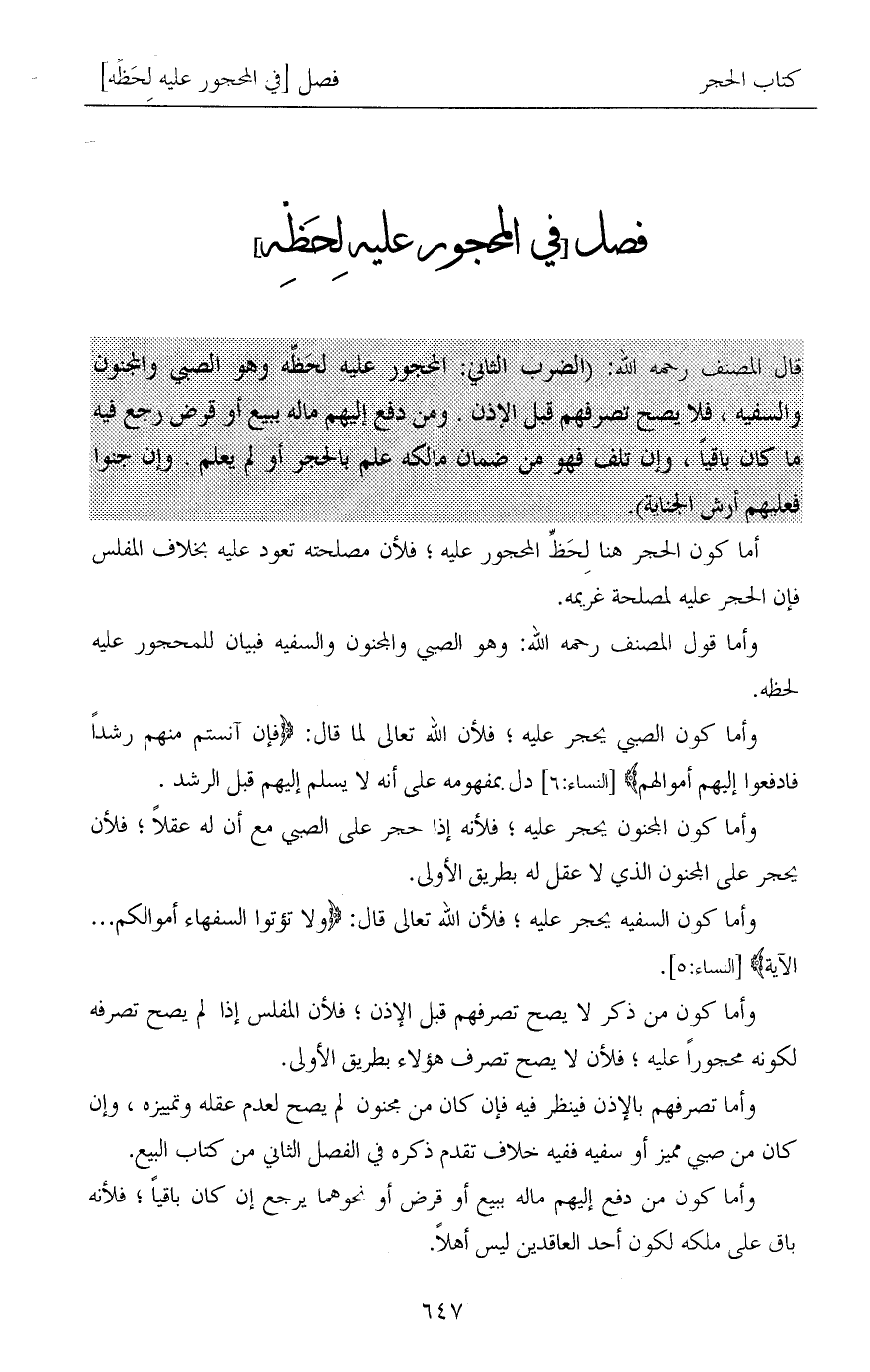 وأما كون الصبي يحجر عليه؛ فلأن الله تعالى لما قال: {فإن آنستم منهم رشداً فادفعوا إليهم أموالهم} [النساء: 6] دل بمفهومه على أنه لا يسلم إليهم قبل الرشد.