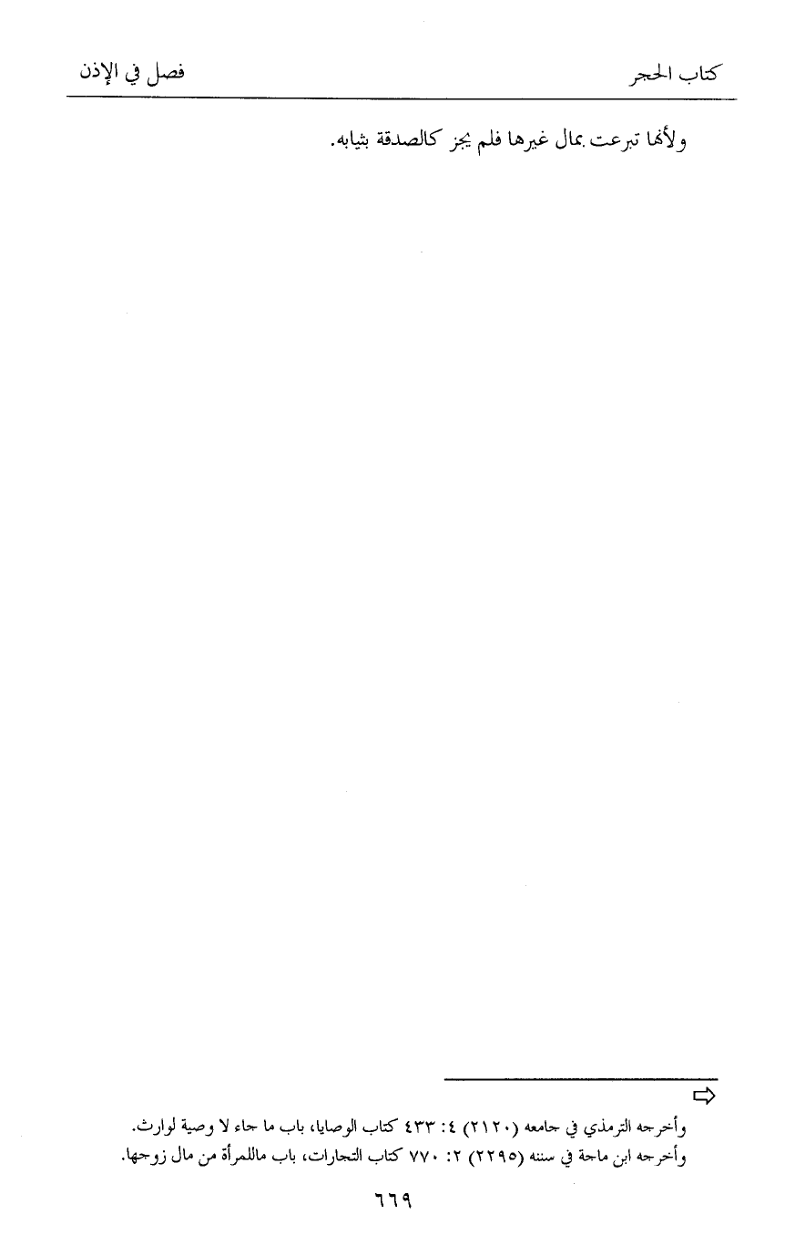 ولأنها تبرعت بمال غيرها فلم يجز كالصدقة بثيابه.