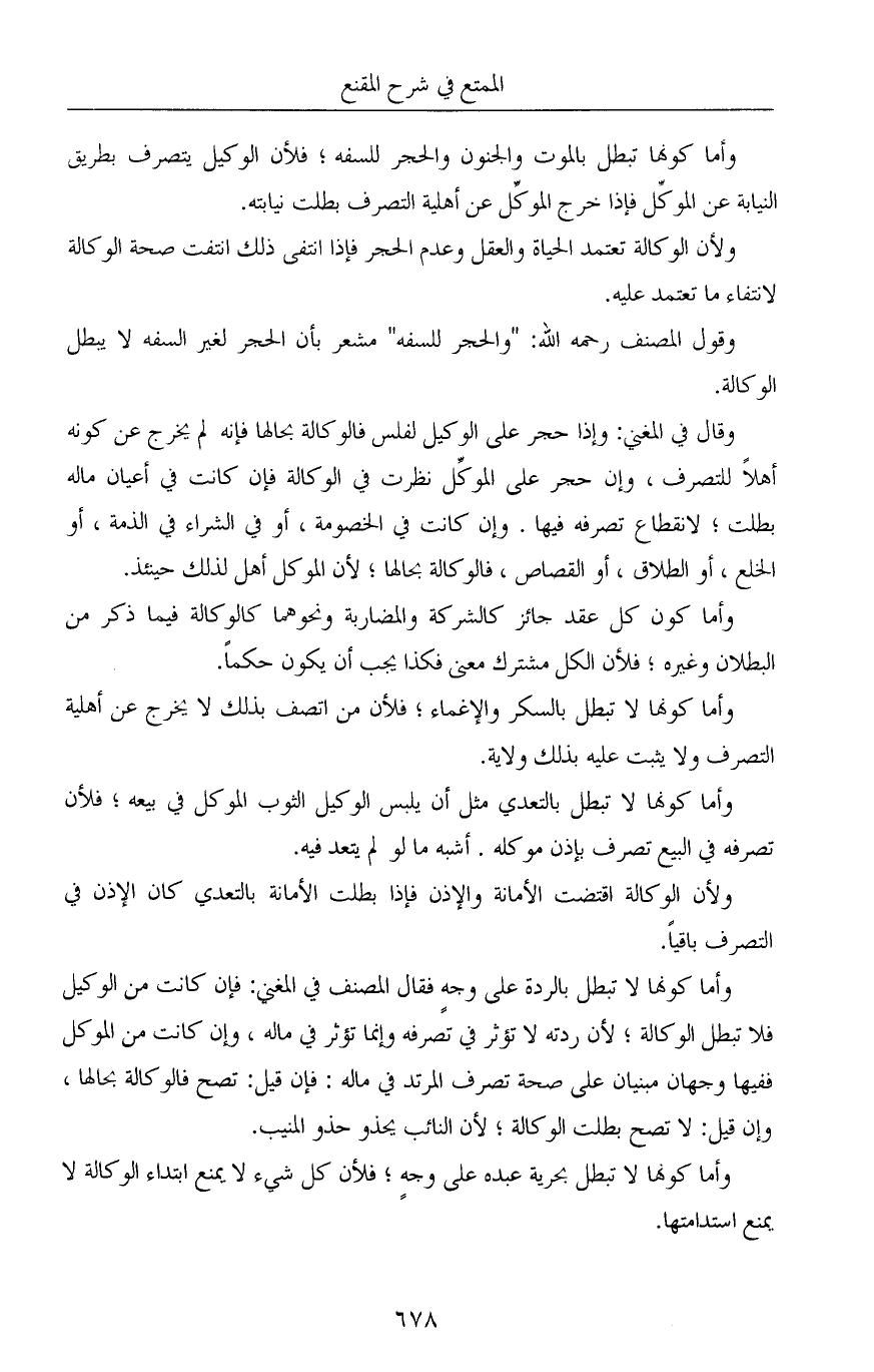 وأما كونها تبطل بالموت والجنون والحجر للسفه؛ فلأن الوكيل يتصرف بطريق النيابة عن الموكِّل فإذا خرج الموكِّل عن أهلية التصرف بطلت نيابته.