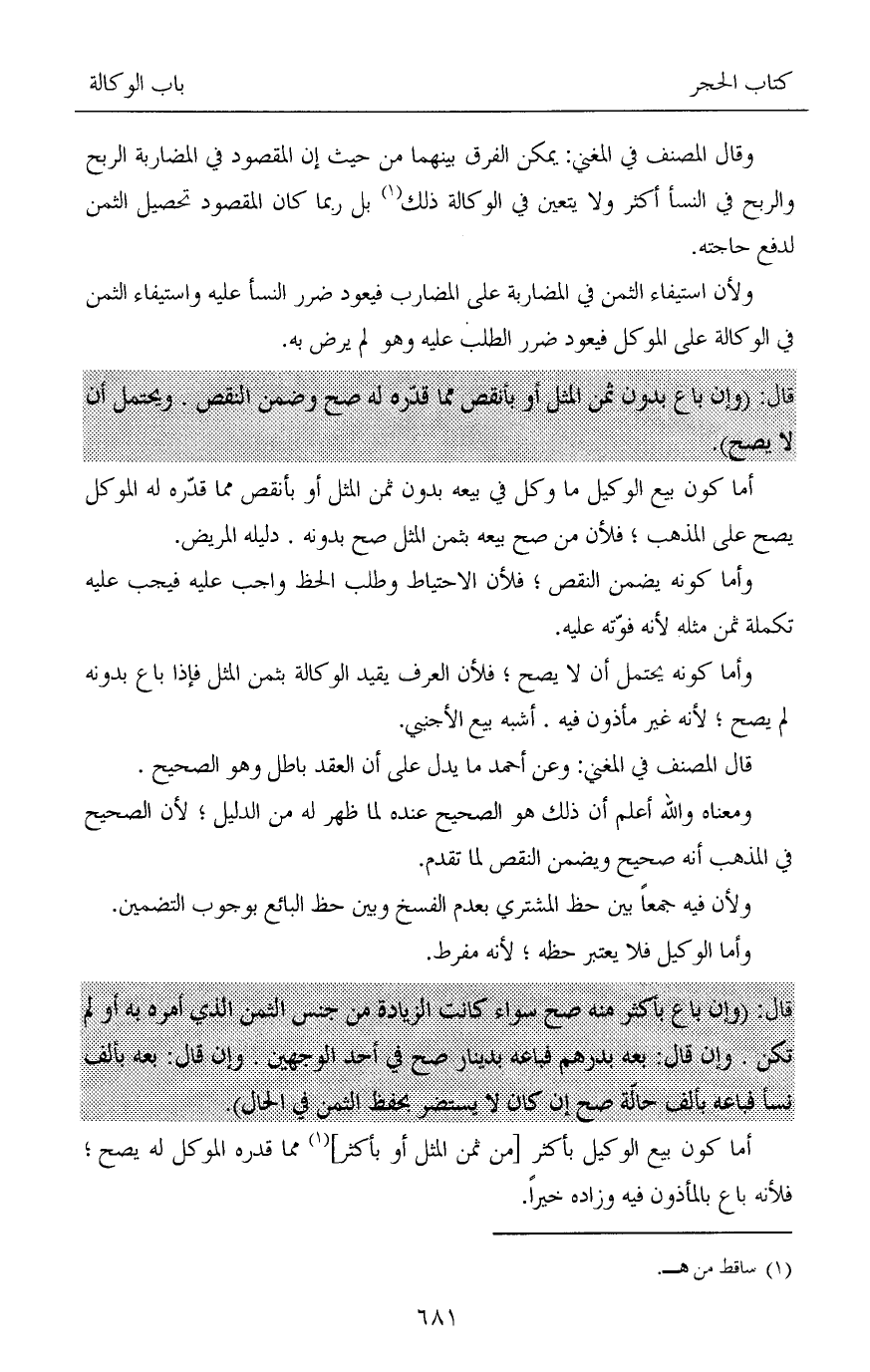 وأما كونه يحتمل أن لا يصح؛ فلأن العرف يقيد الوكالة بثمن المثل فإذا باع بدونه لم يصح؛ لأنه غير مأذون فيه. أشبه بيع الأجنبي.