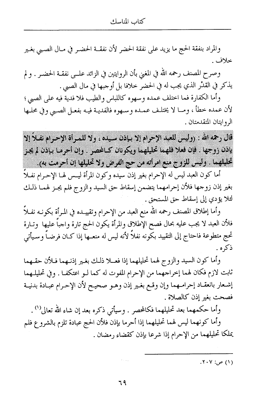 قال رحمه الله: (وليس للعبد الإحرام إلا بإذن سيده، ولا للمرأة الإحرام نفلاً إلا بإذن زوجها. فإن فعلا فلهما تحليلهما ويكونان كالمحصر. وإن أحرما بإذنٍ لم يجز تحليلهما. وليس للزوج منع امرأته من حج الفرض ولا تحليلها إن أحرمت به).