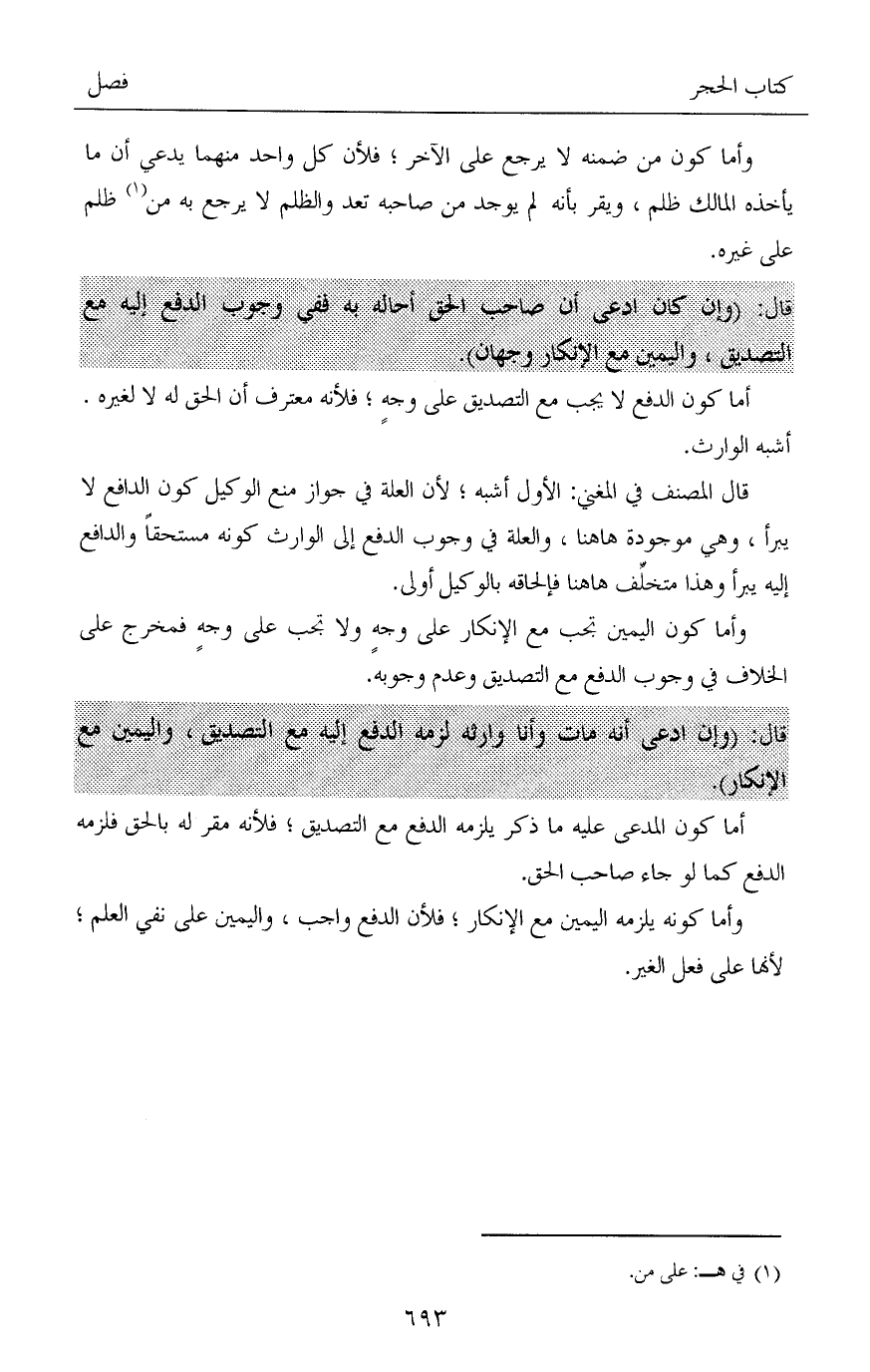 وأما كونه يلزمه اليمين مع الإنكار؛ فلأن الدفع واجب، واليمين على نفي العلم؛ لأنها على فعل الغير.
