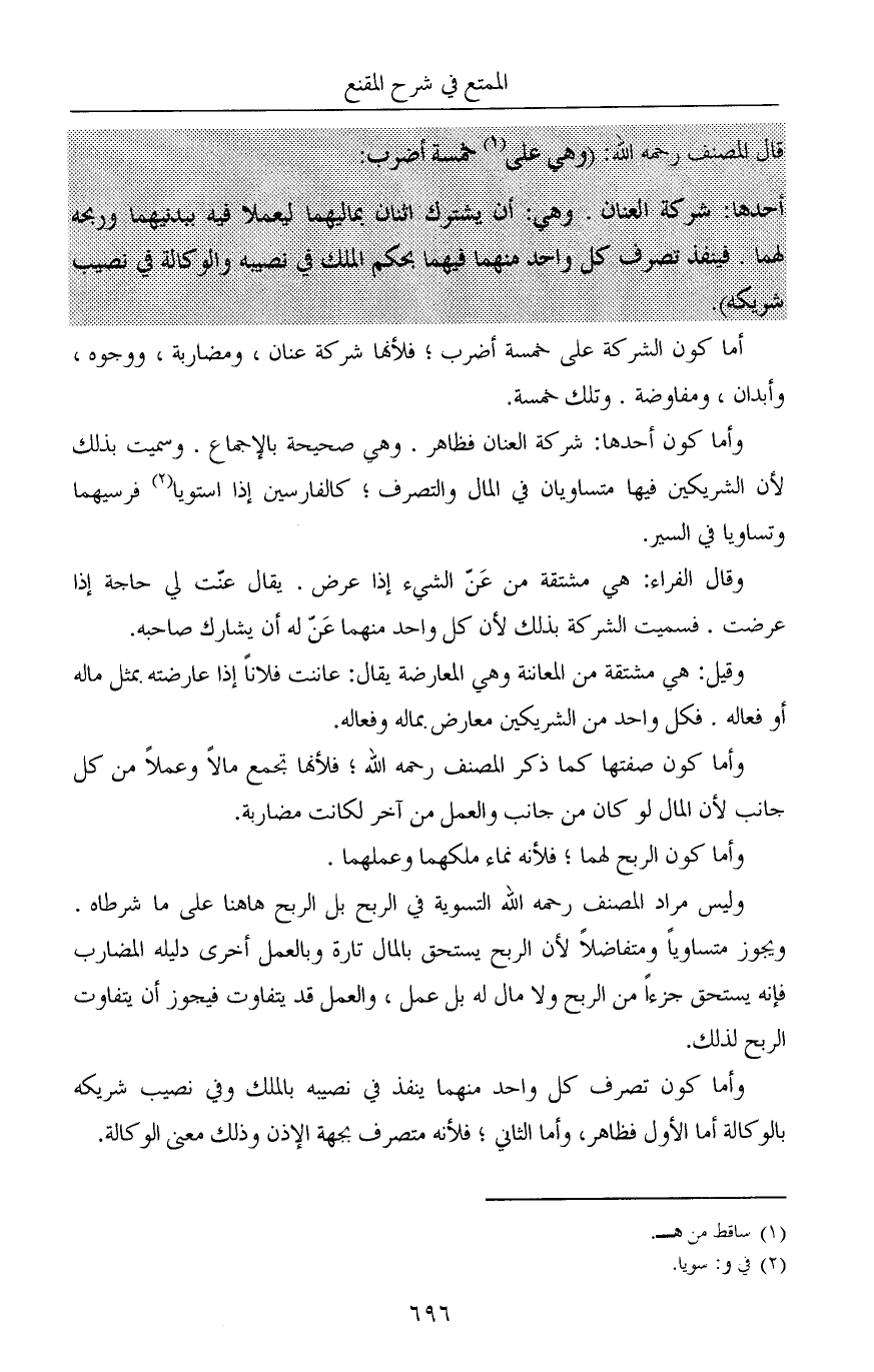 وقيل: هي مشتقة من المعاننة وهي المعارضة يقال: عاننت فلاناً إذا عارضته بمثل ماله أو فعاله. فكل واحد من الشريكين معارض بماله وفعاله.