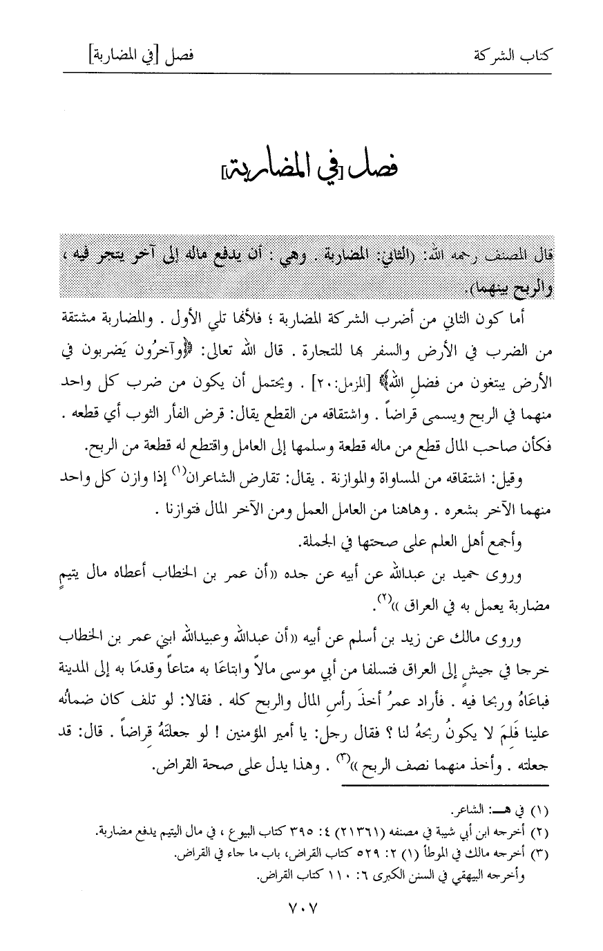 (¬3) أخرجه مالك في الموطأ (1) 2: 529 كتاب القراض، باب ما جاء في القراض.
