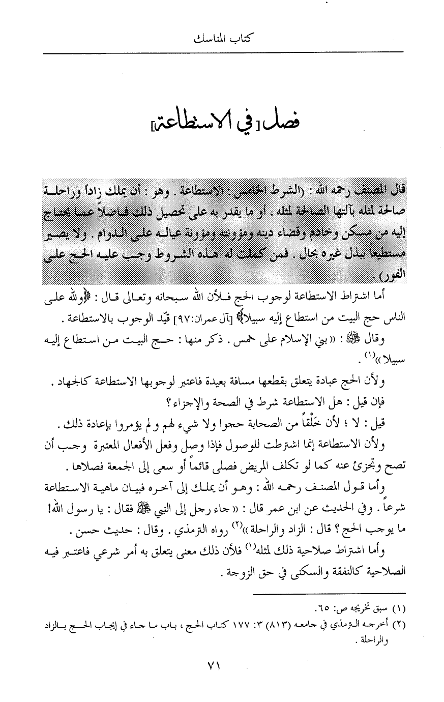 (¬2) أخرجه الترمذي في جامعه (813) 3: 177 كتاب الحج، باب ما جاء في إيجاب الحج بالزاد والراحلة.