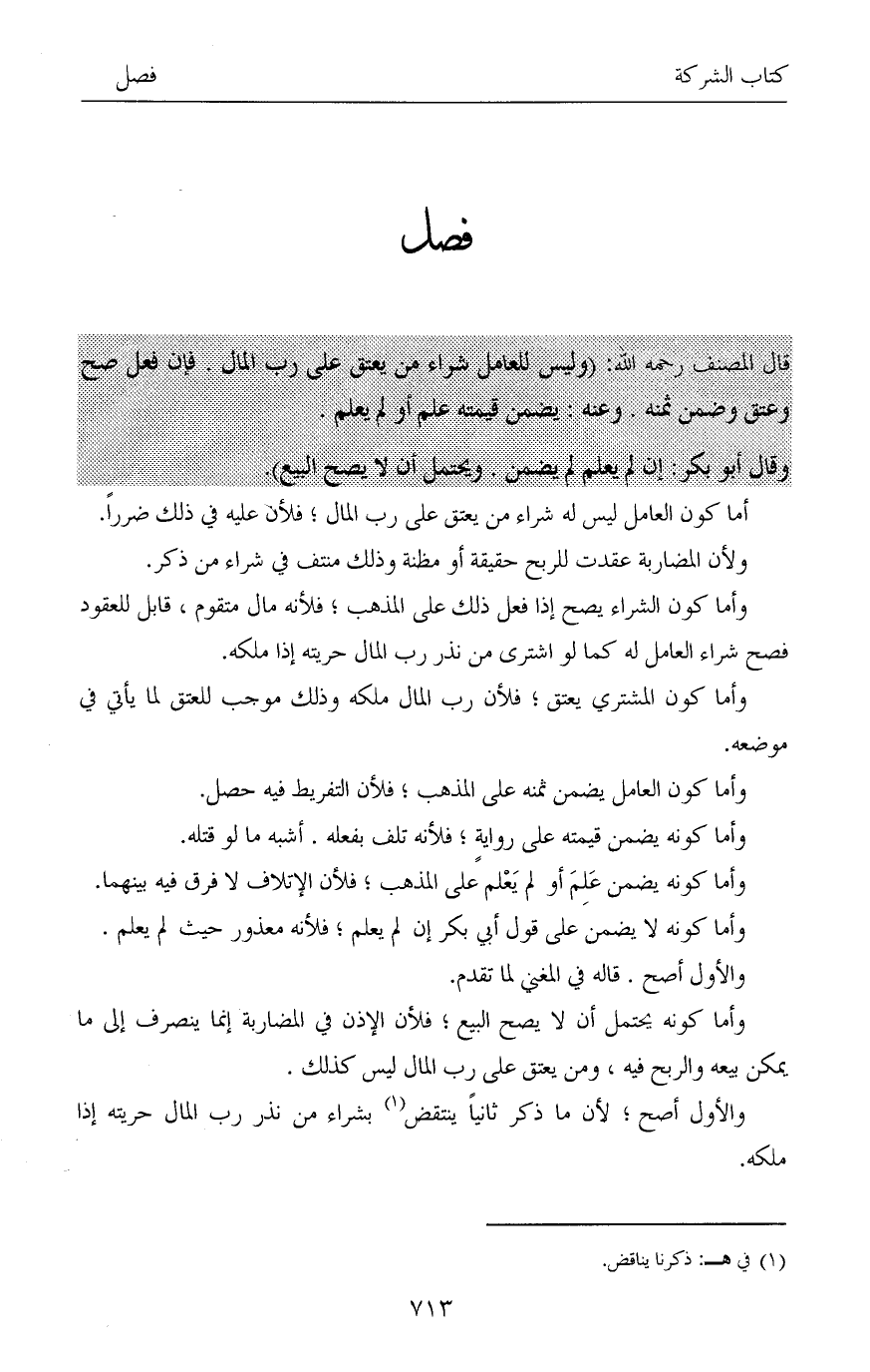 وأما كون الشراء يصح إذا فعل ذلك على المذهب؛ فلأنه مال متقوم، قابل للعقود فصح شراء العامل له كما لو اشترى من نذر رب المال حريته إذا ملكه.