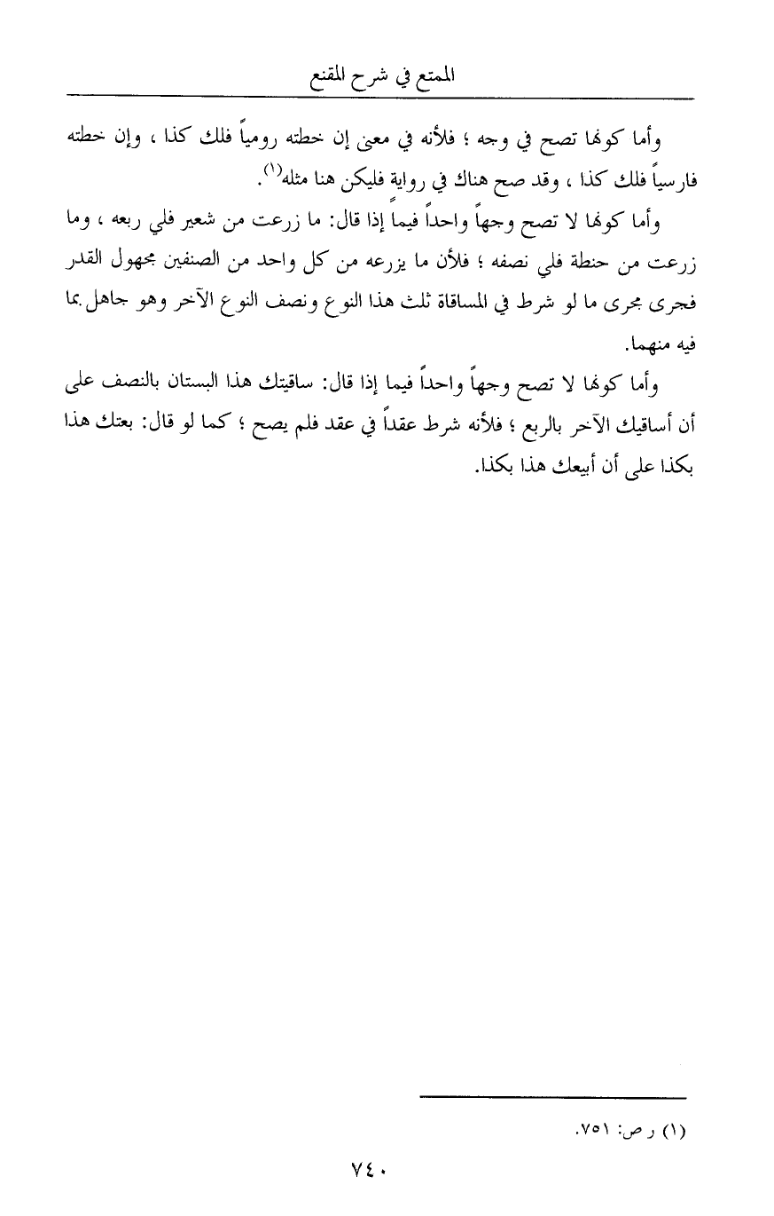 وأما كونها لا تصح وجهاً واحداً فيما إذا قال: ساقيتك هذا البستان بالنصف على أن أساقيك الآخر بالربع؛ فلأنه شرط عقداً في عقد فلم يصح؛ كما لو قال: بعتك هذا بكذا على أن أبيعك هذا بكذا.