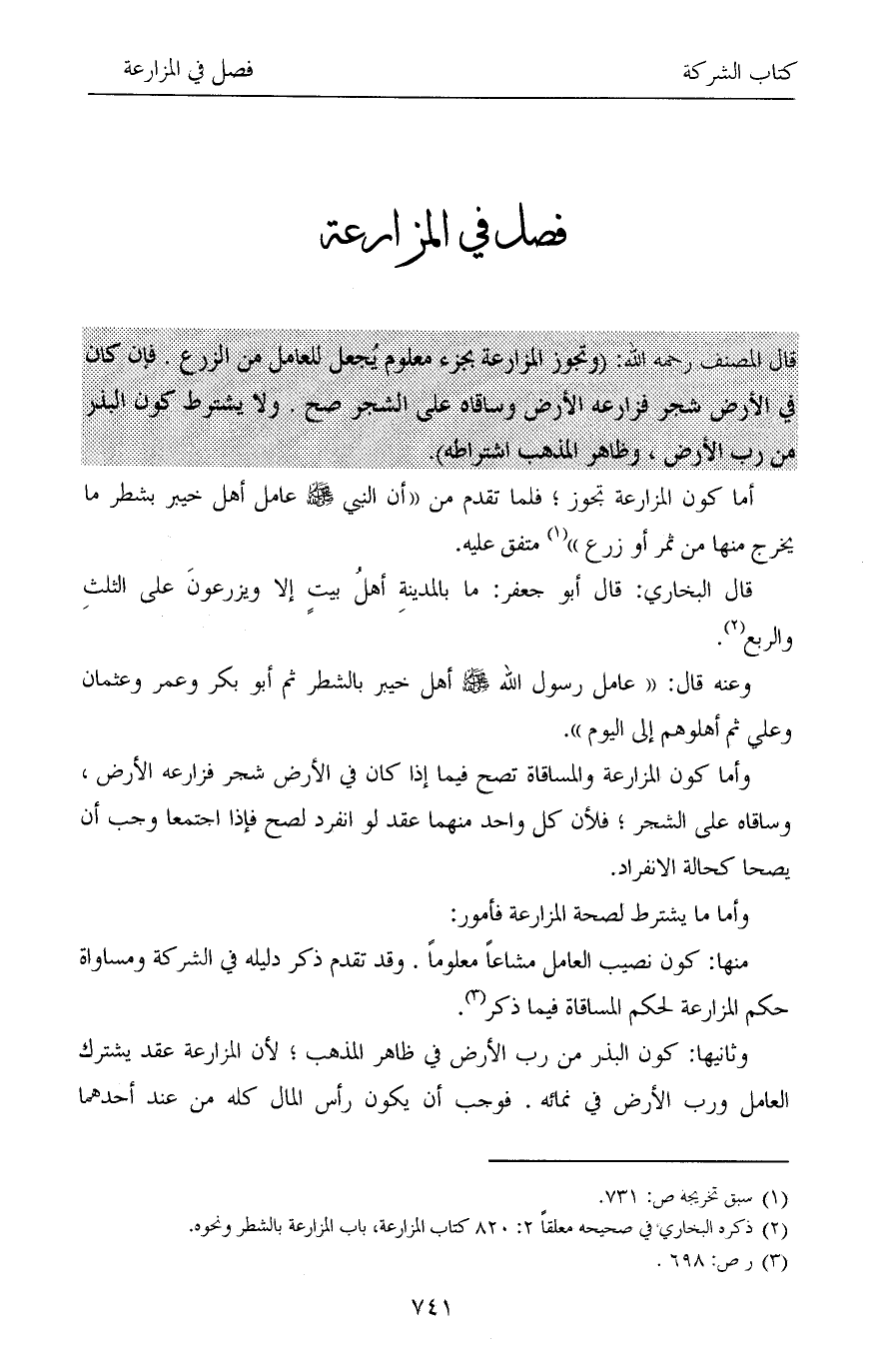 فصل في المزارعة