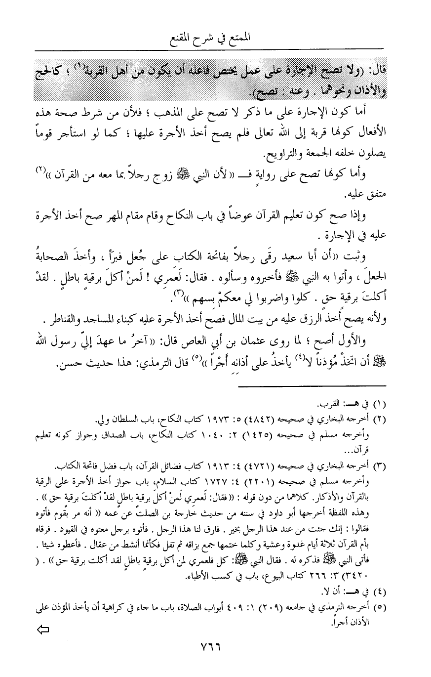 (¬5) أخرجه الترمذي في جامعه (209) 1: 409 أبواب الصلاة، باب ما جاء في كراهية أن يأخذ المؤذن على الأذان أجراً.