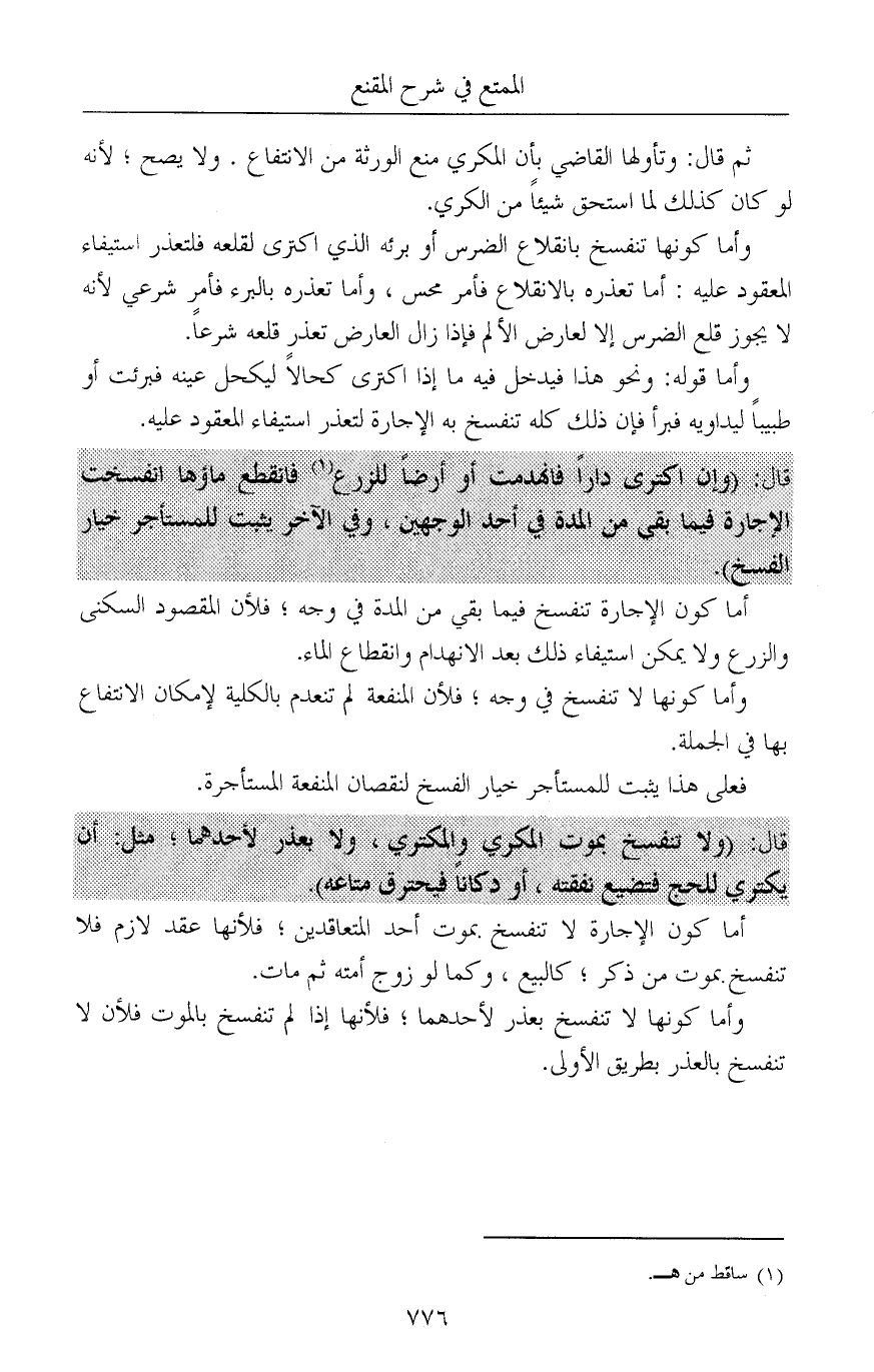 وأما كونها لا تنفسخ في وجه؛ فلأن المنفعة لم تنعدم بالكلية لإمكان الانتفاع بها في الجملة.