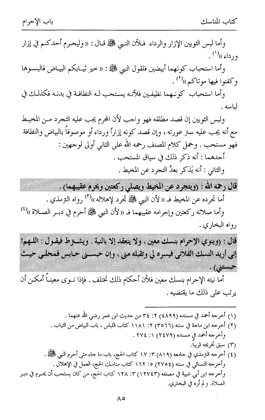 أما تجرده عن المخيط فـ «لأن النبي صلى الله عليه وسلم تجرد لإهلاله» (¬3) رواه الترمذي.