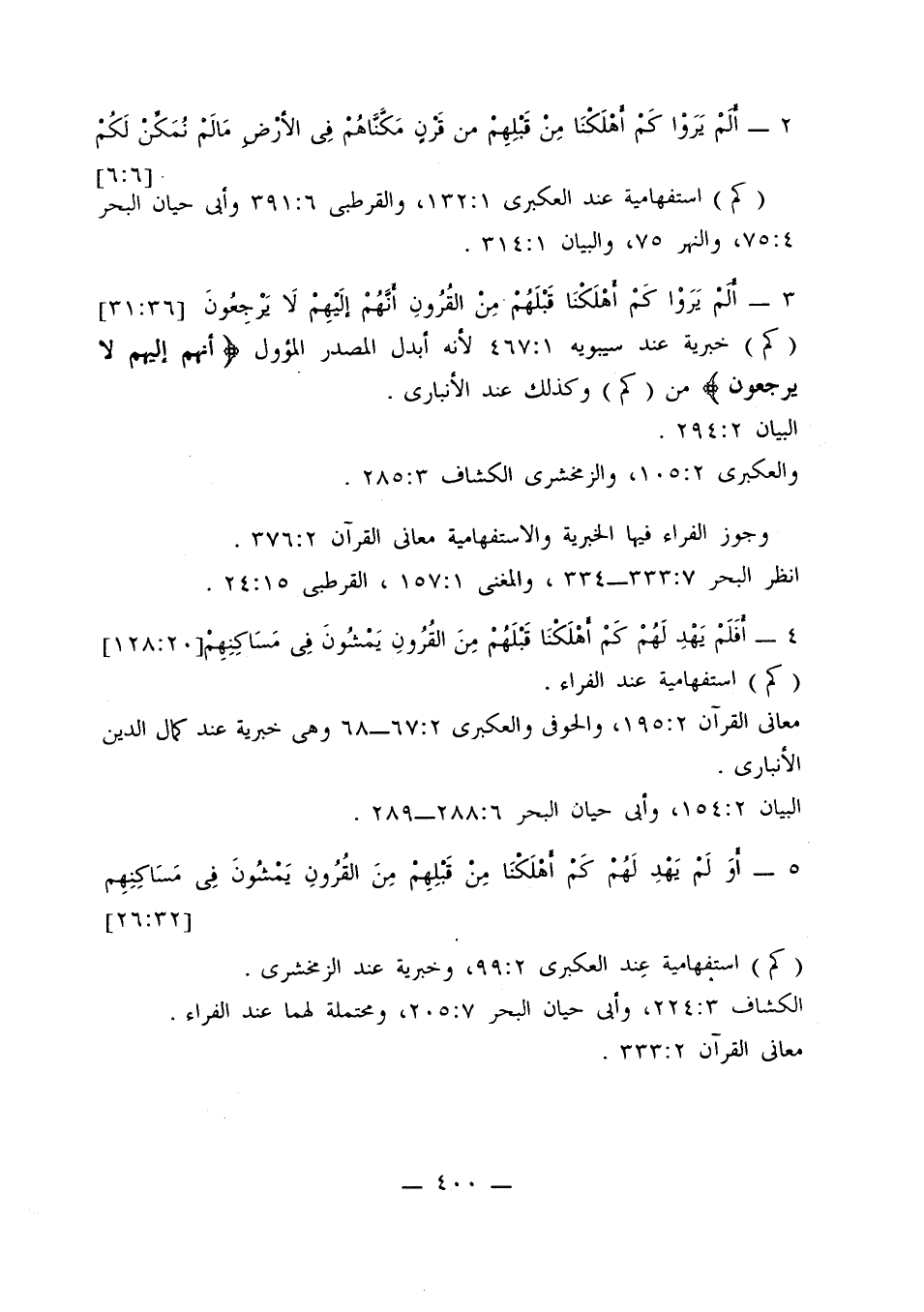 (كم) خبرية عند سيبويه 1: 467 لأنه أبدل المصدر المؤول {أنهم إليهم لا يرجعون} من (كم) وكذلك عند الأنباري. البيان 2: 294. والعكبري 2: 105، والزمخشري الكشاف 3: 285.