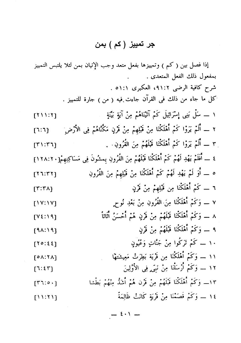 إذا فصل بين (كم) وتمييزها بفعل متعد وجب الإتيان بمن لئلا يلتبس التمييز مفعول ذلك الفعل المتعدى.