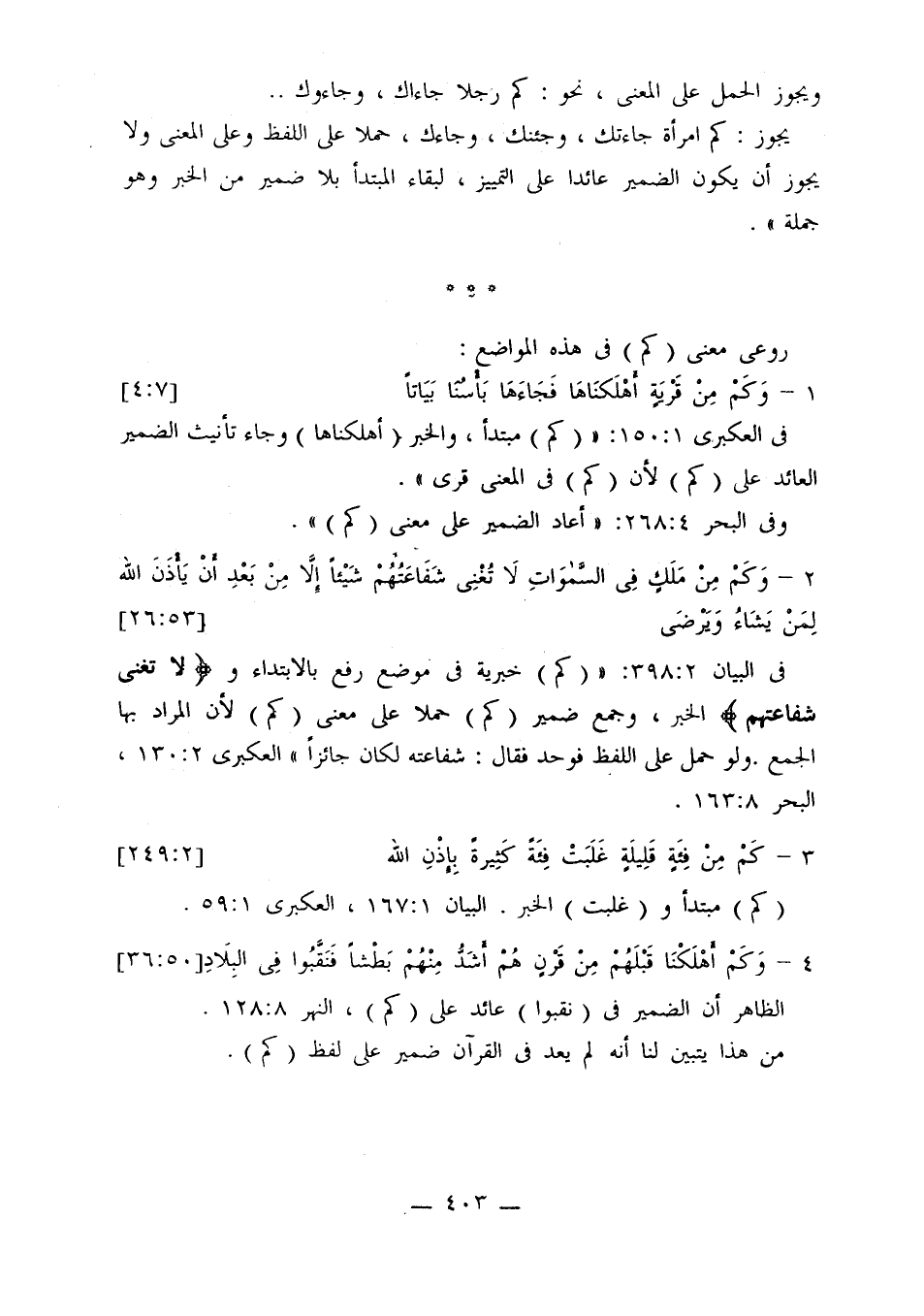 وفي البحر 4: 268: «أعاد الضمير على معنى (كم)».