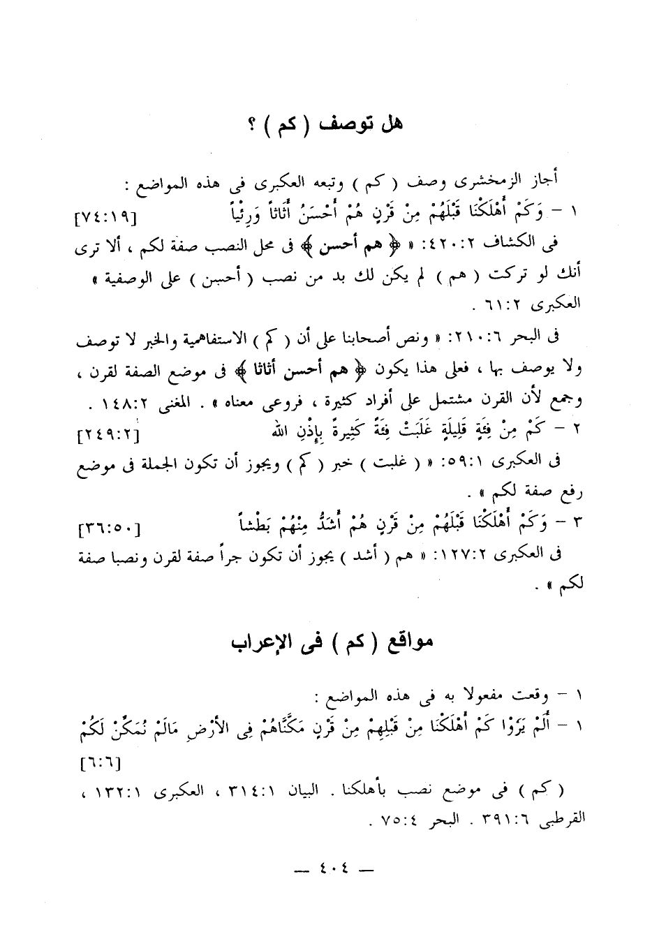 أجاز الزمخشري وصف (كم) وتبه العكبري في هذه المواضع: