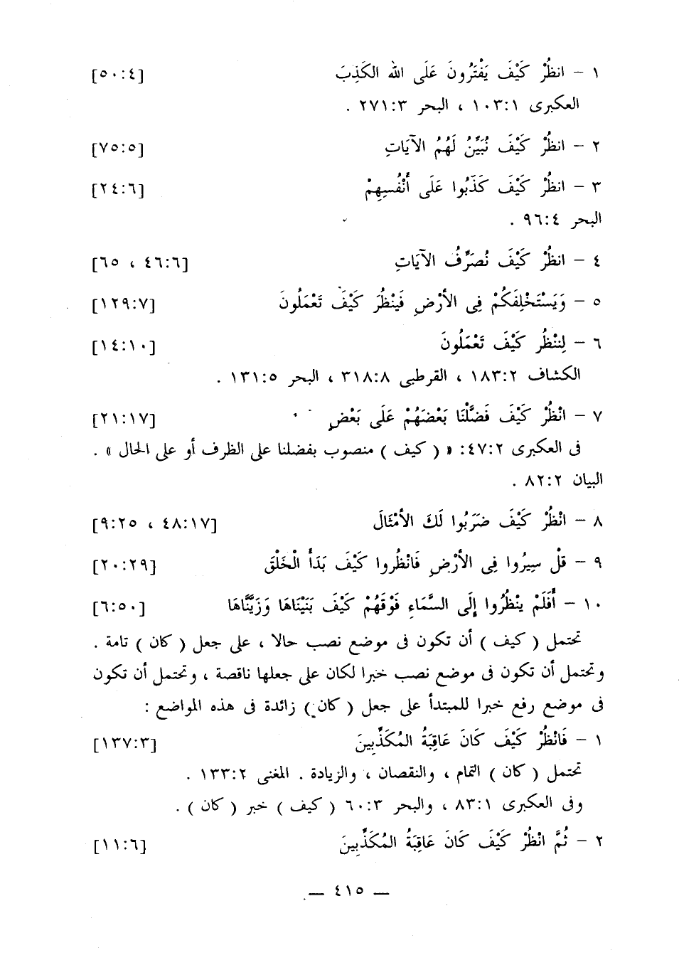في العكبري 2: 47: «(كيف) منصوب بفضلنا على الظرف أو على الحال». البيان 2: 82.