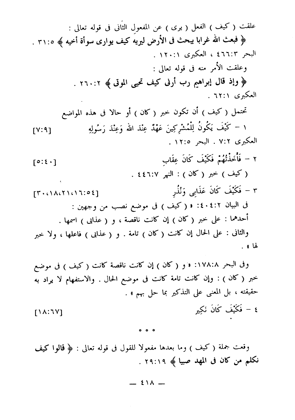 في البيان 2: 404: «(كيف) في موضع نصب من وجهين: