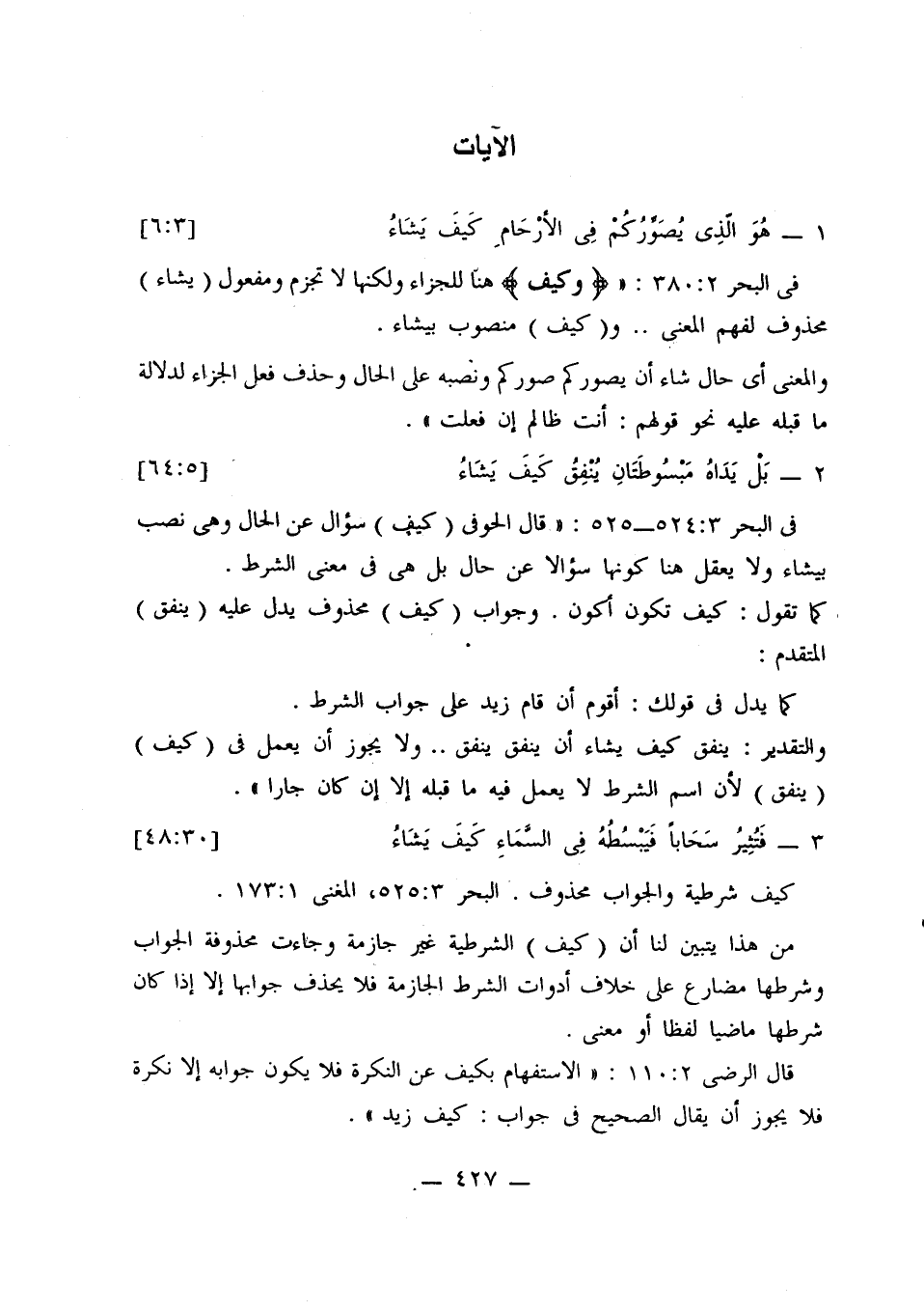 في البحر 3: 524 - 525: «قال الحوفي (كيف) سؤال عن الحال وهي نصب بيشاء ولا يعقل هنا كونها سؤالاً عن حال بل هي في معنى الشرط.