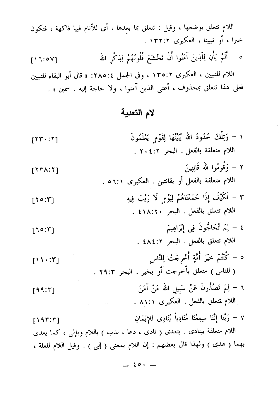 اللام متعلقة بالفعل أو بقانتين. العكبري 1: 56.