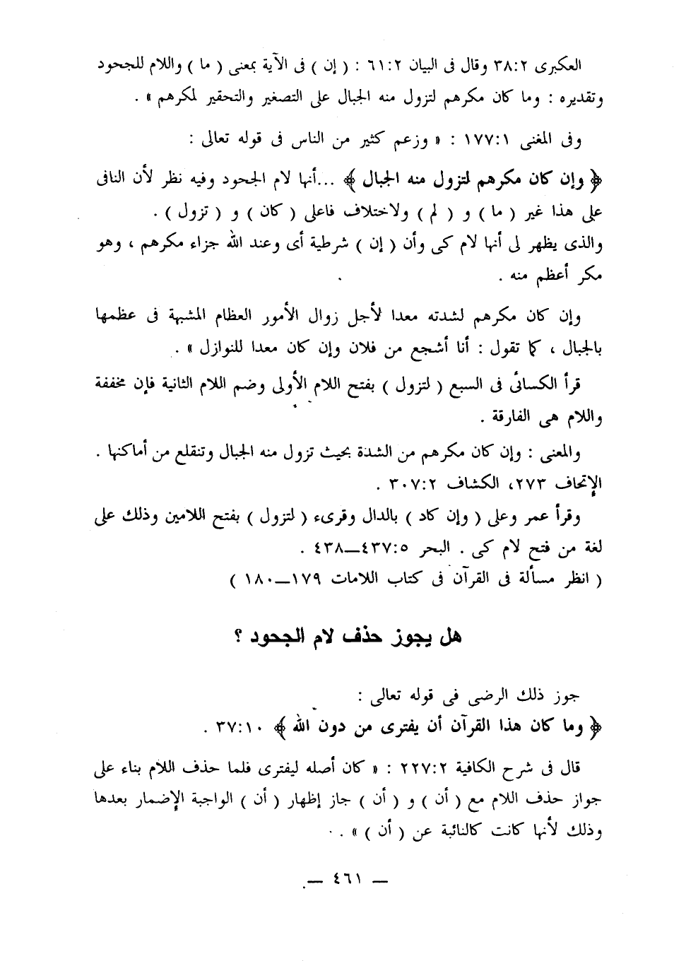{وإن كان مكرهم لتزول منه الجبال} ... أنها لام الجحود وفيه نظر لأن النافي على هذا غير (ما) و (لم) ولاختلاف فاعلي (كان) و (تزول).