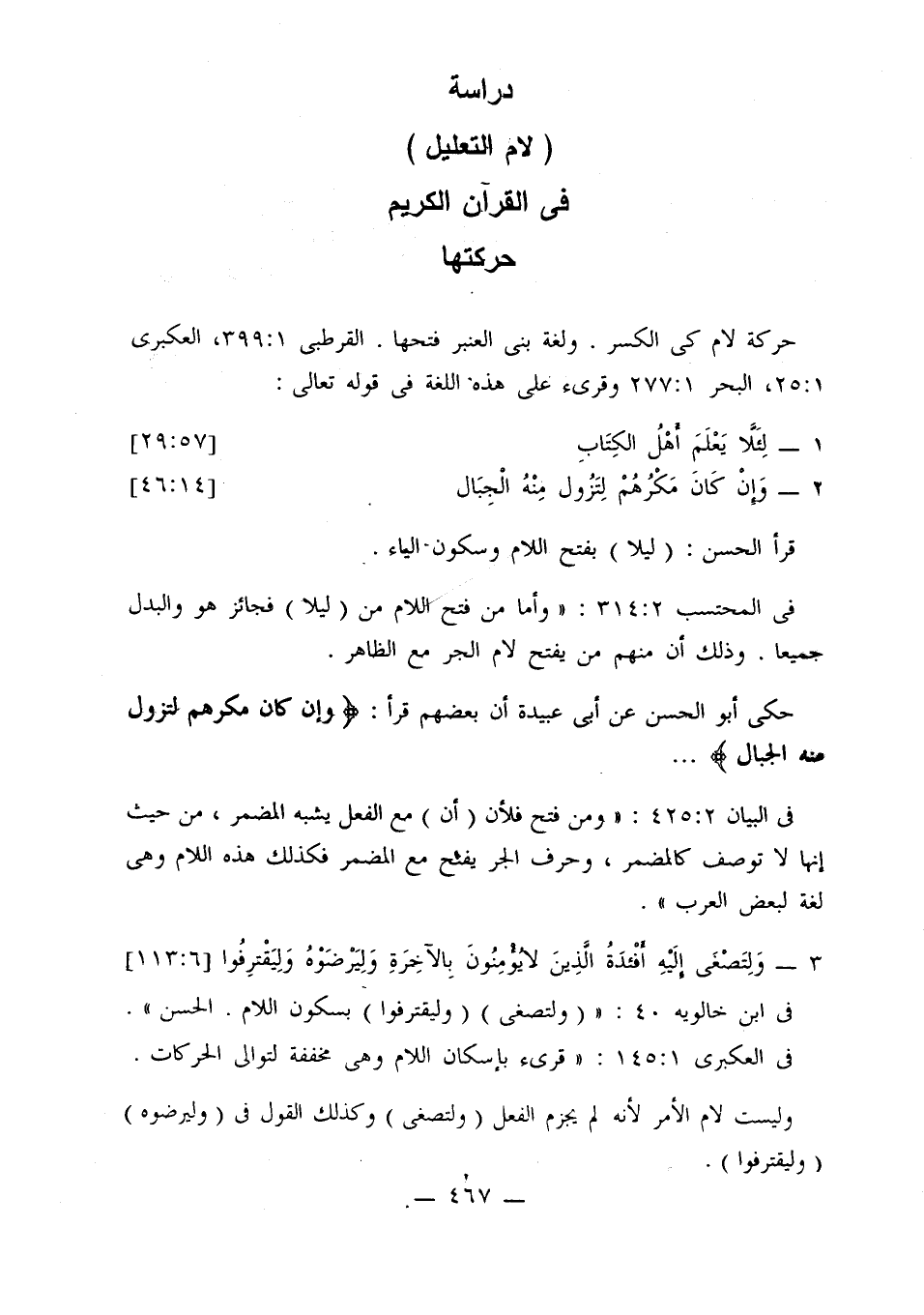في البيان 2: 425: «ومن فتح فلأن (أن) مع الفعل يشبه المضمر، من حيث إنها لا توصف كالمضمر، وحرف الجر بفتح مع المضمر فكذلك هذه اللام وهي لغة لبعض العرب».