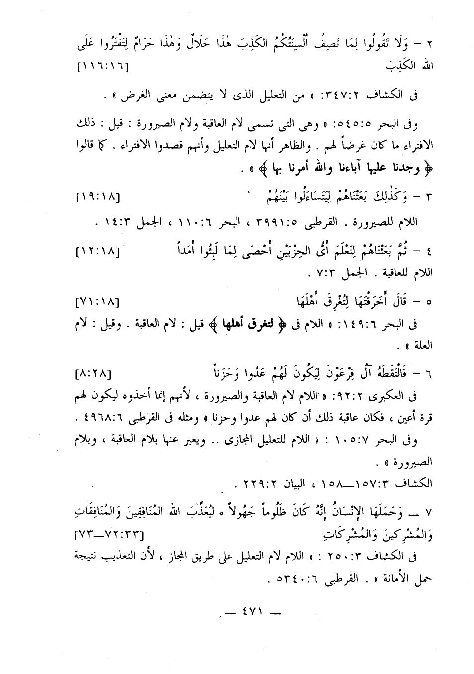 في الكشاف 2: 347: «من التعليل الذي لا يتضمن معنى الغرض».